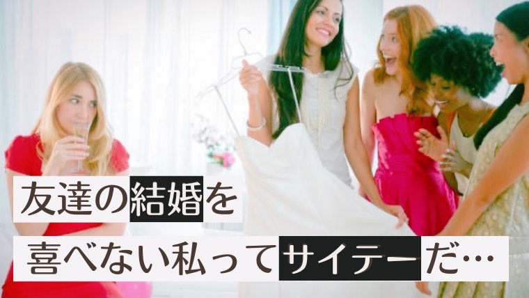 アラサーになると周りがぞくぞくと結婚し始めます。本当は友達に心からおめでとうと言いたいのに、焦りや不安、結婚に対するプレッシャーから辛くなってしまう日々。